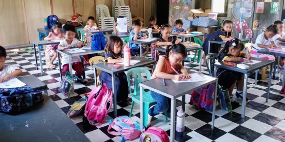 The Philippines has two national languages, Tagalog and English. Many children learn English at school, and therefore the teaching in groups for three-year-olds is bilingual. State schools do not have special classes, just like other pre-schools. Many localities don't even have a pre-school, so we provide the only opportunity for many children to learn. Teaching at our Hosea schools is free, and it also includes teaching materials. A poor family cannot afford private school tuition fees: if they have to choose between food and school, they have to choose food.