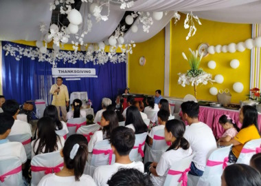 Ilon aihe on myös Hosea Malpalo Calinta –kirkkomme! Seurakunta perustettiin yhdelle pahimmista terroristialueista. Alussa oli monenlaista ongelmaa, kun teimme työtä sielunvihollisen pesäpaikassa, ja pari kertaa jouduimme armeijan ja NPA-terroristien taistelun keskiöön. Nuori pastoripari on urhoollinen evankelioinnin asiassa. Seurakunta aloitti toimintansa bambumajassa, ja viimein saatiin valmiiksi oikea rakennus.